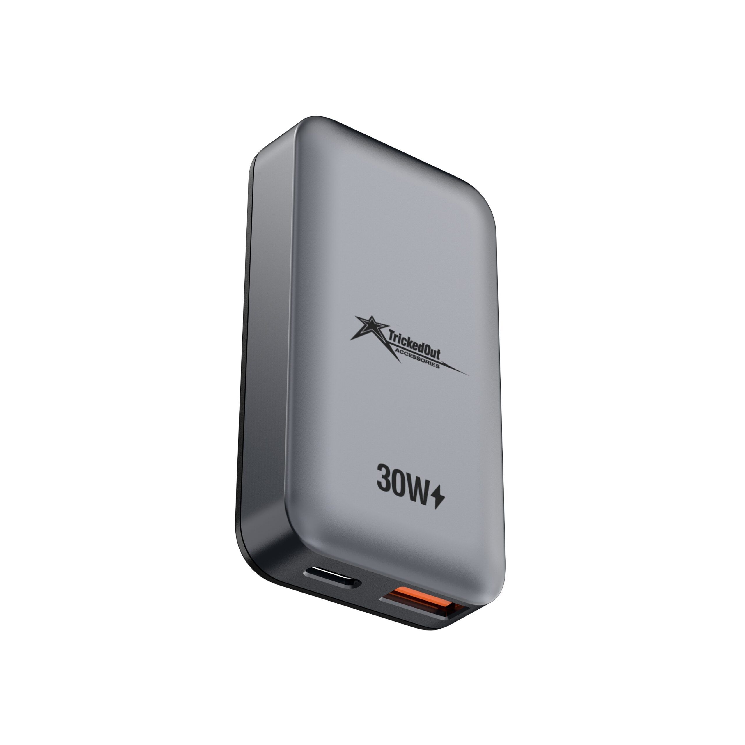 Tricked Out Accessories 30W Slim Wall Charger is a compact, high-performance charging solution designed for speed, portability, and everyday reliability. Built with advanced GaN technology, this charger delivers powerful, efficient output in an ultra-slim profile that fits easily into bags, pockets, and tight wall outlets without blocking neighboring plugs.