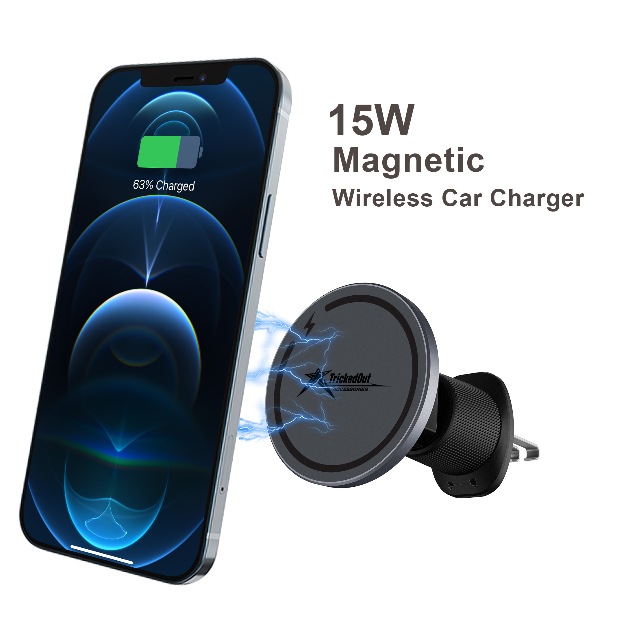 Upgrade your drive with the Tricked Out Accessories MagLock Car Charger, the easiest and most reliable way to keep your phone powered while on the road. Designed with strong magnetic alignment for iPhone 12 and newer, this charger snaps your device securely into place the moment you bring it close—no clips, no cables, no frustration.